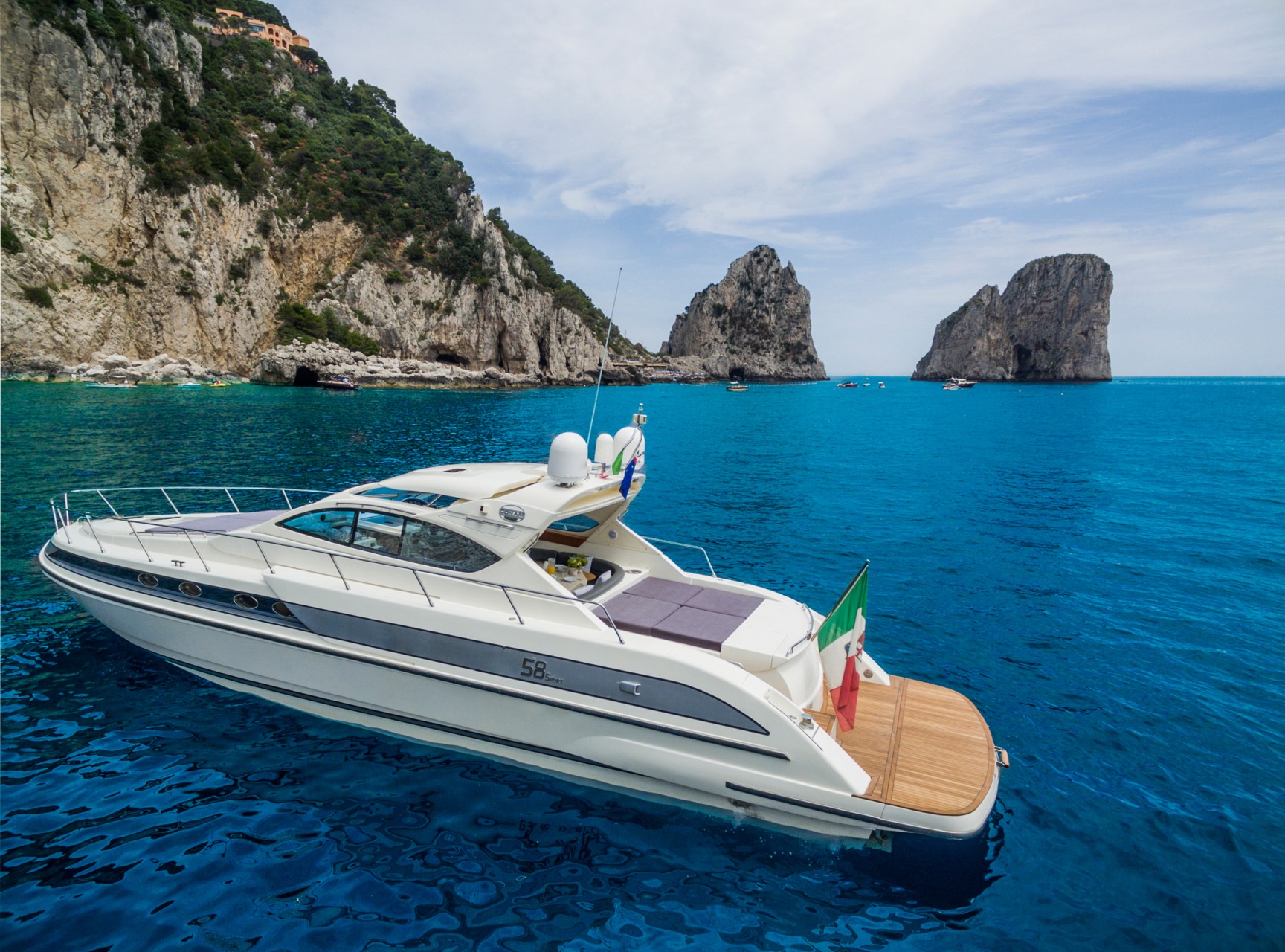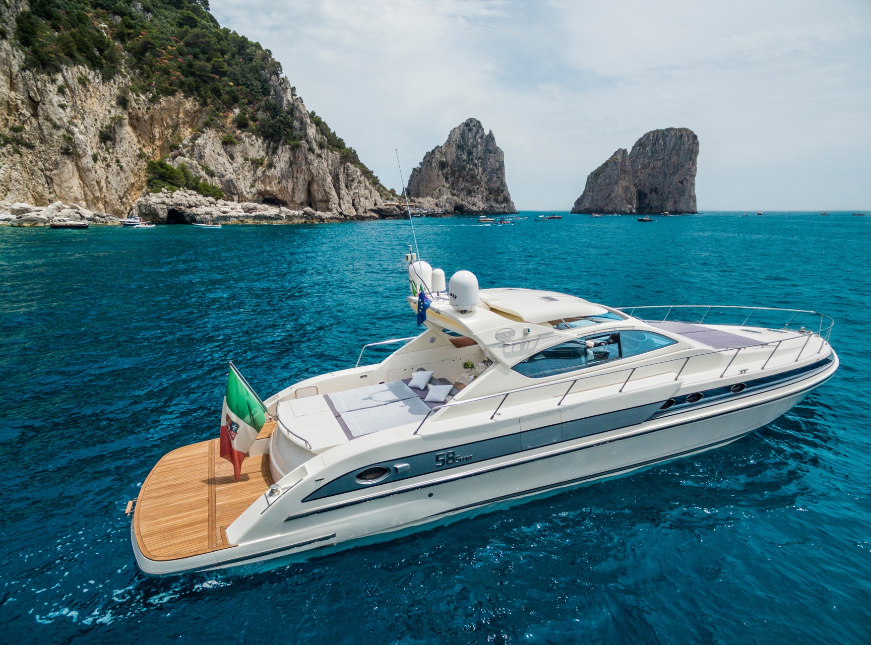 Conam 58S, un'icona di stile e prestazioni marittime. Con le sue linee fluide e il design raffinato, questo yacht incarna l'armonia tra lusso e funzionalità. Offre ampi spazi per il relax e interni amabilmente progettati che combinano design e tecnologia all'avanguardia. La navigazione fluida e silenziosa fa di quest asuberba imbarcazione la scelta ideale anche per i marinai più esigenti.